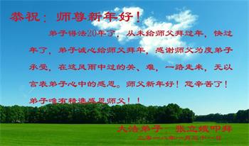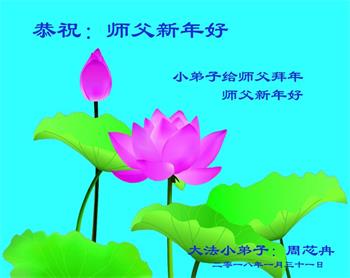 弟子及全家五口之家给师父拜年了,祝师父新年快乐!弟子一定做好三件事,不愧对大法弟子的称号,让师父放心! 黑龙江佳木斯大法弟子及全家敬上! 黑龙江省佳木斯一学法小组遥祝师尊新年快乐!