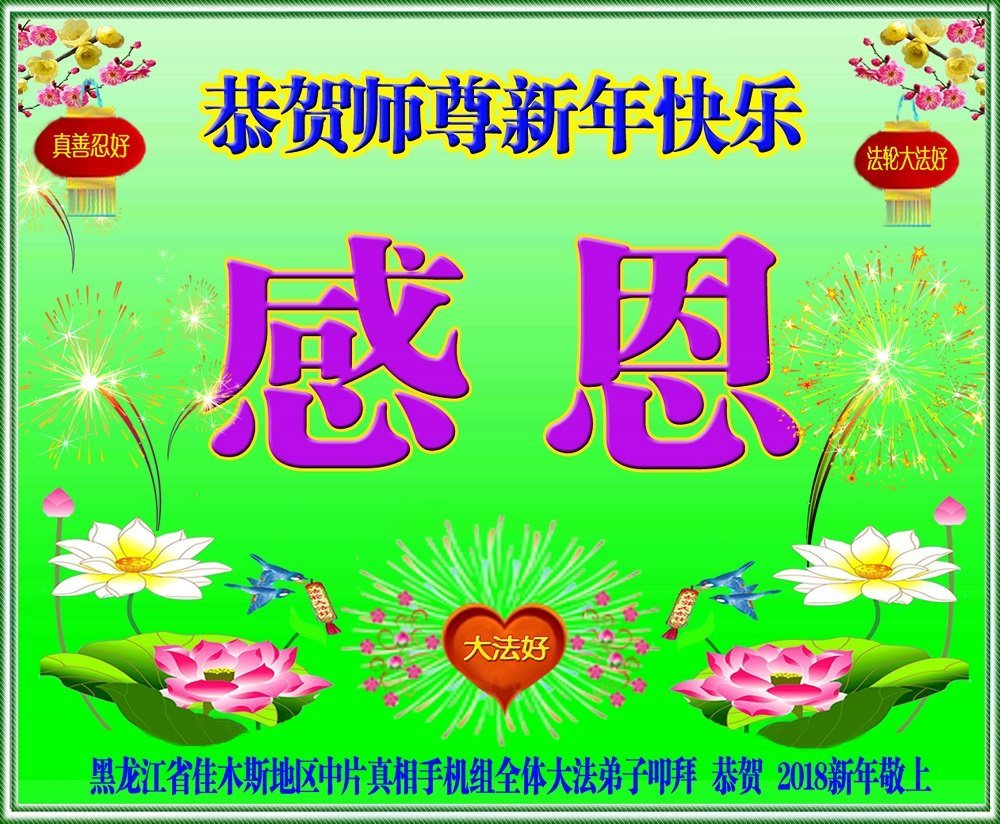 牢记法轮大法好,真善忍好。 黑龙江省佳木斯大法弟子恭祝慈悲伟大的师尊新年快乐!