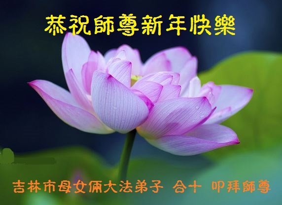 恭祝慈悲伟大的师尊新年快乐! 吉林市母女俩大法弟子 合十 叩拜师尊! 吉林市净莲学法小组恭祝慈悲伟大的师尊新年快乐!