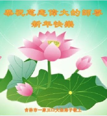 吉林市一家三口大法弟子恭祝师尊新年快乐!