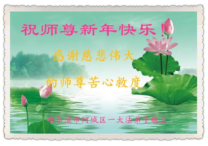 谢师尊救度! 哈尔滨南岗区三位大法弟子及家人叩拜! 黑龙江省哈尔滨市双城乡联兴乡大法弟子恭祝师尊新年快乐!