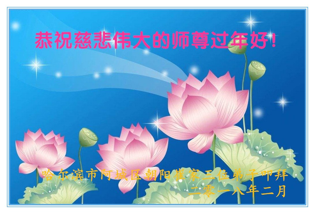 【明慧网二零一八年二月十三日】 黑龙江哈尔滨大法弟子全家恭祝师尊新年快乐!
