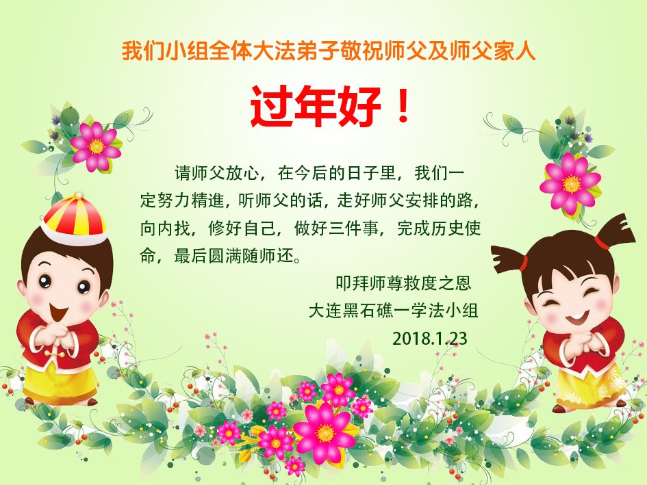 【明慧网二零一八年二月十三日】 辽宁大连市大法弟子恭祝慈悲伟大的师尊过年好!