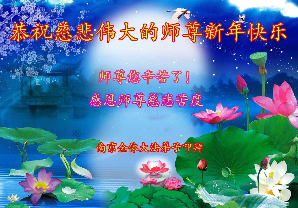 师父过年好! 在新的一年里,我们要多学法,精進实修,整体配合好多救人,完成自己的使命,跟师父回家。 江苏省南京全体大法弟子恭祝慈悲伟大的师尊新年快乐!