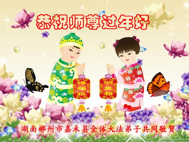 祝师尊新年快乐!弟子跟您勇猛精進直至圆满。 湖南郴州市嘉禾县全体大法弟子恭祝师尊过年好!