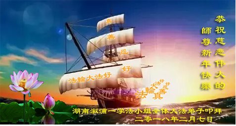 在这值千金万金亘古未有的伟大时刻,我们一定要珍惜,不懈怠多救众生,不忘记使命,助师正法! 湖南湘潭全体大法弟子 合十 2018年 湖南益阳大法弟子恭祝师尊新年快乐!
