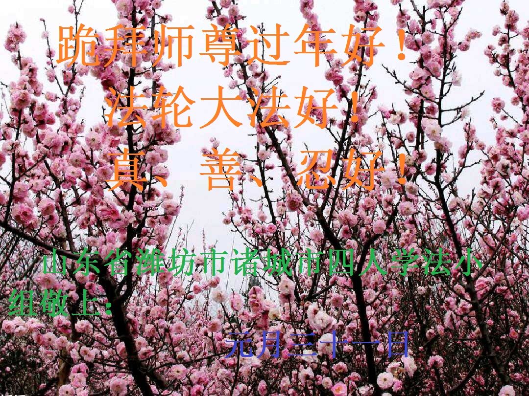 山东潍坊临朐县全体大法弟子恭祝慈悲伟大的师尊过年好!叩拜师尊!