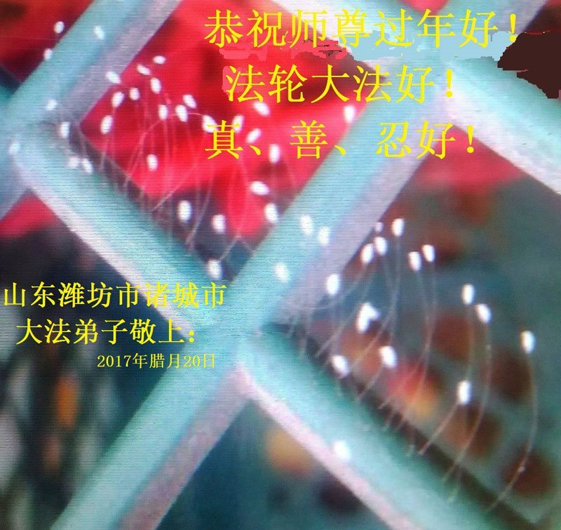 祝慈悲伟大的师尊过年好!感恩师尊的慈悲救度!师尊您辛苦了!在新的一年里,弟子一定要抓紧时间,精進实修,以法为师,踏踏实实的做好三件事,正念救人,跟师父回归到真正的家园。 山东潍坊大法弟子恭祝师尊过年好!