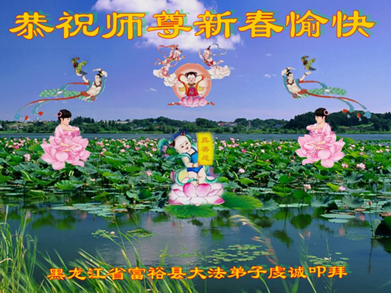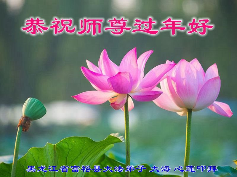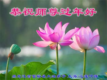 富裕县二道湾镇一中年女大法弟子叩谢师父救度之恩、恭祝师尊新年快乐! 黑龙江齐齐哈尔市七人修炼之家、两名修炼亲属及一名支持大法世人及学法小组全体成员恭祝师尊新年快乐!