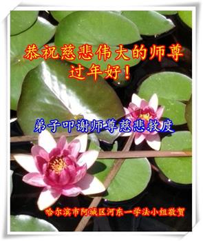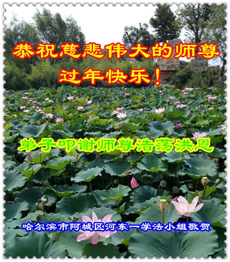 恭祝慈悲伟大的师尊过年好! 弟子叩谢师尊慈悲救度 哈尔滨市阿城区河东一学法小组敬贺 黑龙江省哈尔滨市阿城市区河东一大法弟子恭祝慈悲伟大的师尊过年快乐!