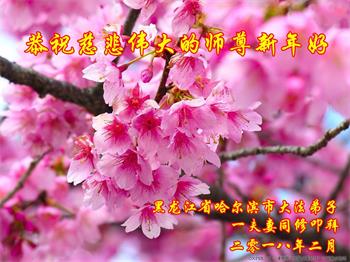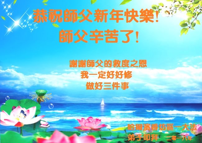 【明慧网二零一八年二月十三日】 哈黑龙江省哈尔滨市香坊区一大法弟子恭祝师尊新年快乐!