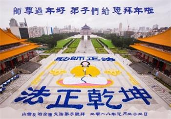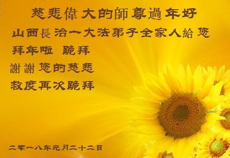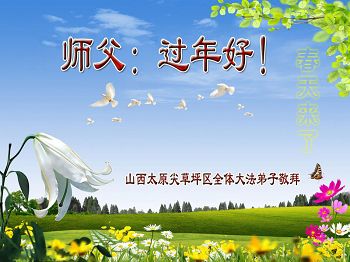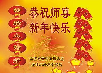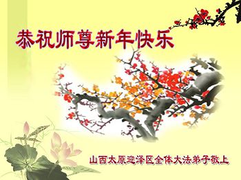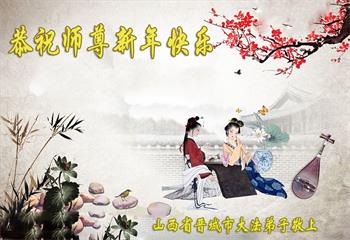 新春伊始,万象更新。值此辞旧迎新之际,山西太原全体大法弟子以无比虔诚的感恩之心恭祝师尊新年快乐!在正法步入尾声这“值千金、值万金”的意义非凡的时刻,我们倍感救人的紧迫,我们要一如既往、尽最大努力,多救世人,不辱使命,兑现誓约,无愧于正法时期大法弟子的称号!山西太原全体大法弟子叩拜! 山西长治全体大法弟子恭祝师尊过年好!