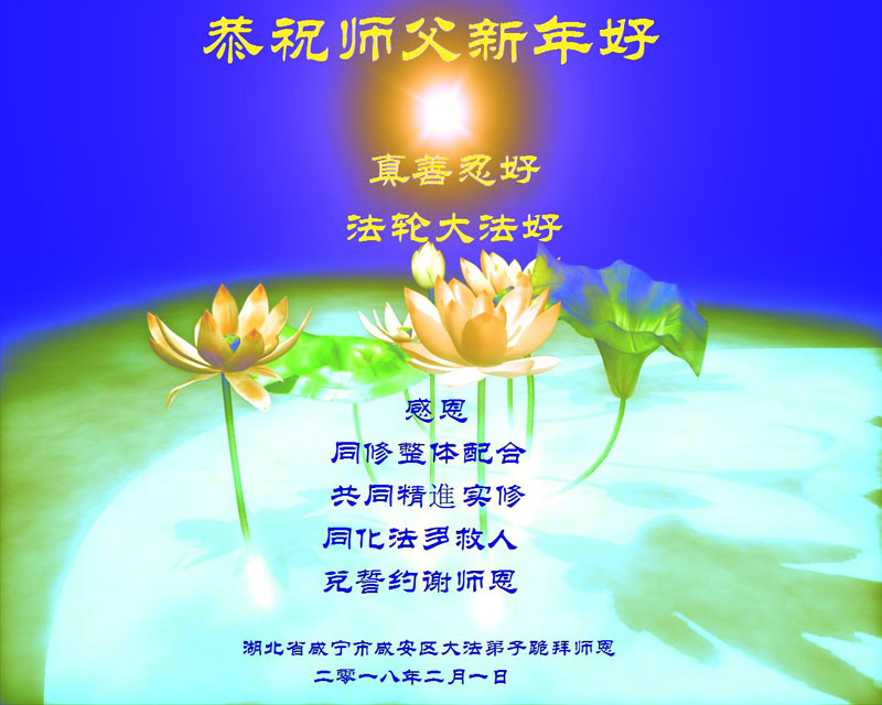 【明慧网二零一八年二月十三日】 湖北省随州市广水市大法弟子恭祝师父新年好!