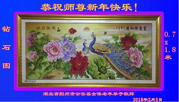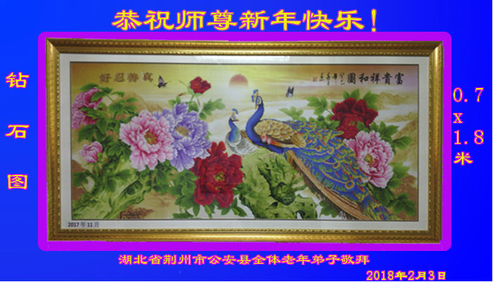 钻石图代表着我们湖北省公安县全体老年弟子的心,紧紧的贴在一起,跟着师父走向美好的未来,回归自己真正的家园。 湖北省荆州市公安县一大法弟子恭祝师尊新年快乐!