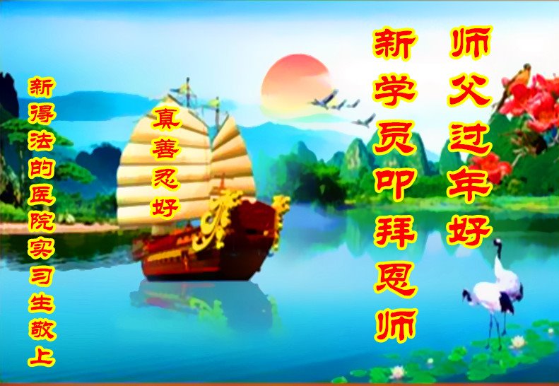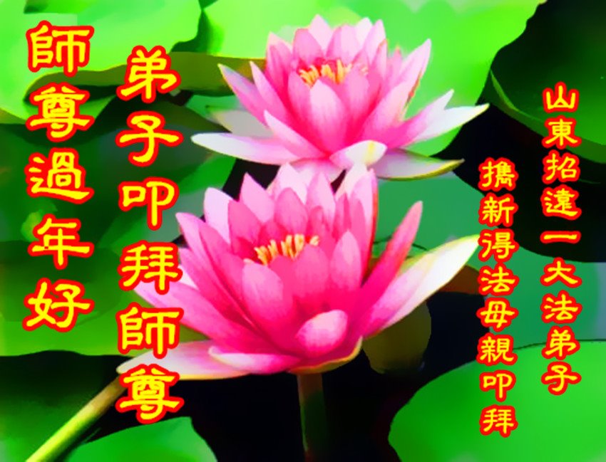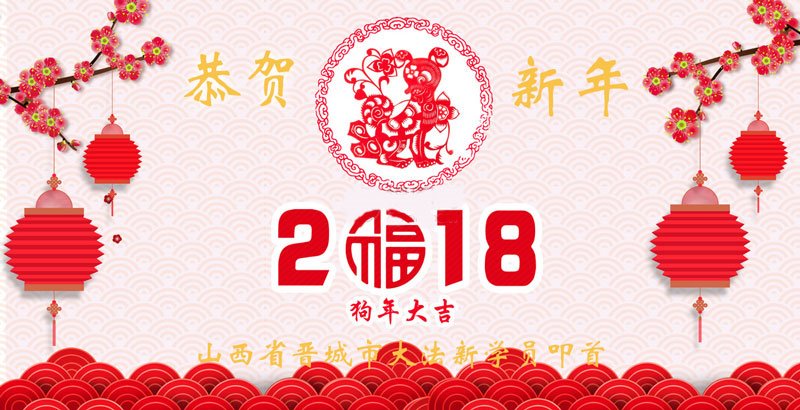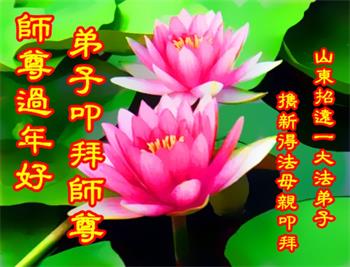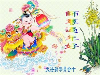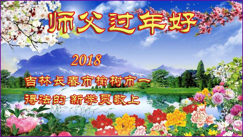 | 【明慧网二零一八年二月十三日】(明慧网记者综合报道)二零一八年大年在即,在法轮大法中受益的新学员向慈悲伟大的李洪志师父恭祝新年好! 他们中有刚刚得法几天或几年的新学员,在师父的慈悲救度下,摆脱了癌症恶疾;有的刚刚炼部份法轮功功法,“腰脱”即复位;还有八十几岁的老人幸运的在晚年得法,生命得到延续…… 湖北仙桃一位大法新学员在贺词中对师父说:“找不到任何语言来表达我怎么感谢您!活着,我就要告诉人们,曾经特晚期的癌症患者好了,因为炼法轮功,我好了。” 山东钢铁集团的一位大法新学员说:“人世间有太多的苦,自从修炼了法轮大法,弟子明白了人来在世上的真正目地是返本归真,弟子感到从未有过的幸福和美妙!” 山东招远一位刚得法的医生见习生说:“在慈悲师尊的点悟和保护下,我有幸参加了一个学法小组。在这里,我看到了不同阶层、不同年龄、文化高低的人在一起学法,他们是那么的平静、祥和、善良,真是人间的净土啊!我通过学法,通过和这些好人的接触,也感觉变化很大。” 辽宁盘锦刚刚学两遍《转法轮》的新学员给李大师拜年!