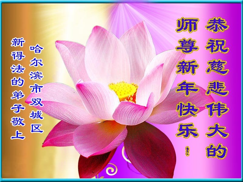 恭祝慈悲伟大的师父新年快乐! 师父过年好!师父辛苦了!谢谢您的慈悲救度。 唐山丰润区一新学员恭祝慈悲伟大的师父新年快乐! 黑龙江哈尔滨市双城区新得法的弟子恭祝师尊新年快乐!