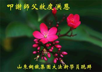 在山东招远一刚开始修炼大法的青年学员恭祝师尊新年快乐! 师尊您好! 我是一名得法不久的新学员,在医院实习期间,见证了大法的超常。我亲眼目睹一名八十岁的老年法轮功学员出车祸,断裂了七根肋骨,当时昏迷被送往医院,后清醒后,当天要求出院回家了。结果在家学法炼功,只一星期的时间就痊愈了,使当时知道此事的所有人都感到不可思议。 这件活生生的事例对我心灵的震撼很大,使我也对法轮大法坚信不疑了,随之也有幸加入了修炼大法的行列,成为了一名法轮大法的修炼者。 后来,在慈悲师尊的点悟和保护下,我有幸参加了一个学法小组。在这里,我看到了不同阶层、不同年龄、文化高低的人在一起学法,他们是那么的平静、祥和、善良,真是人间的净土啊!我通过学法,通过和这些好人的接触,也感觉变化很大。 在新的一年里,我一定会放下执著心,实修自己,做好三件事,不辜负师尊的慈悲苦度。 山东钢铁集团大法新学员感恩师尊带领走上返本归真之路