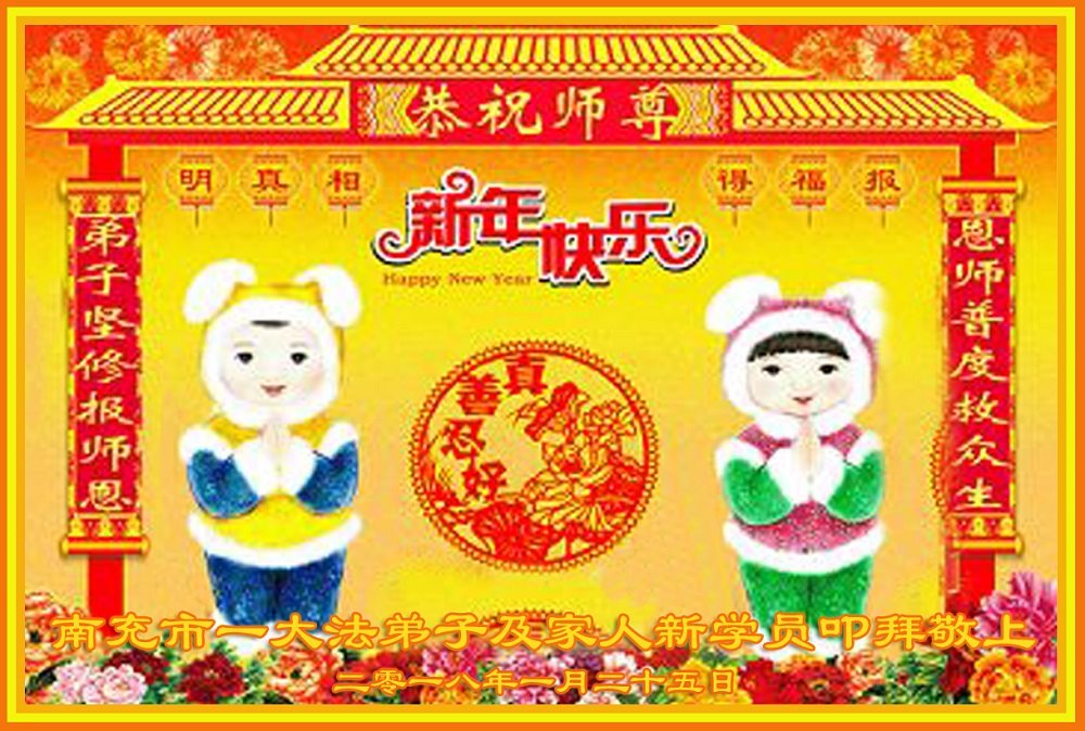 四川南充市一大法弟子及家人新学员恭祝师尊新年快乐!