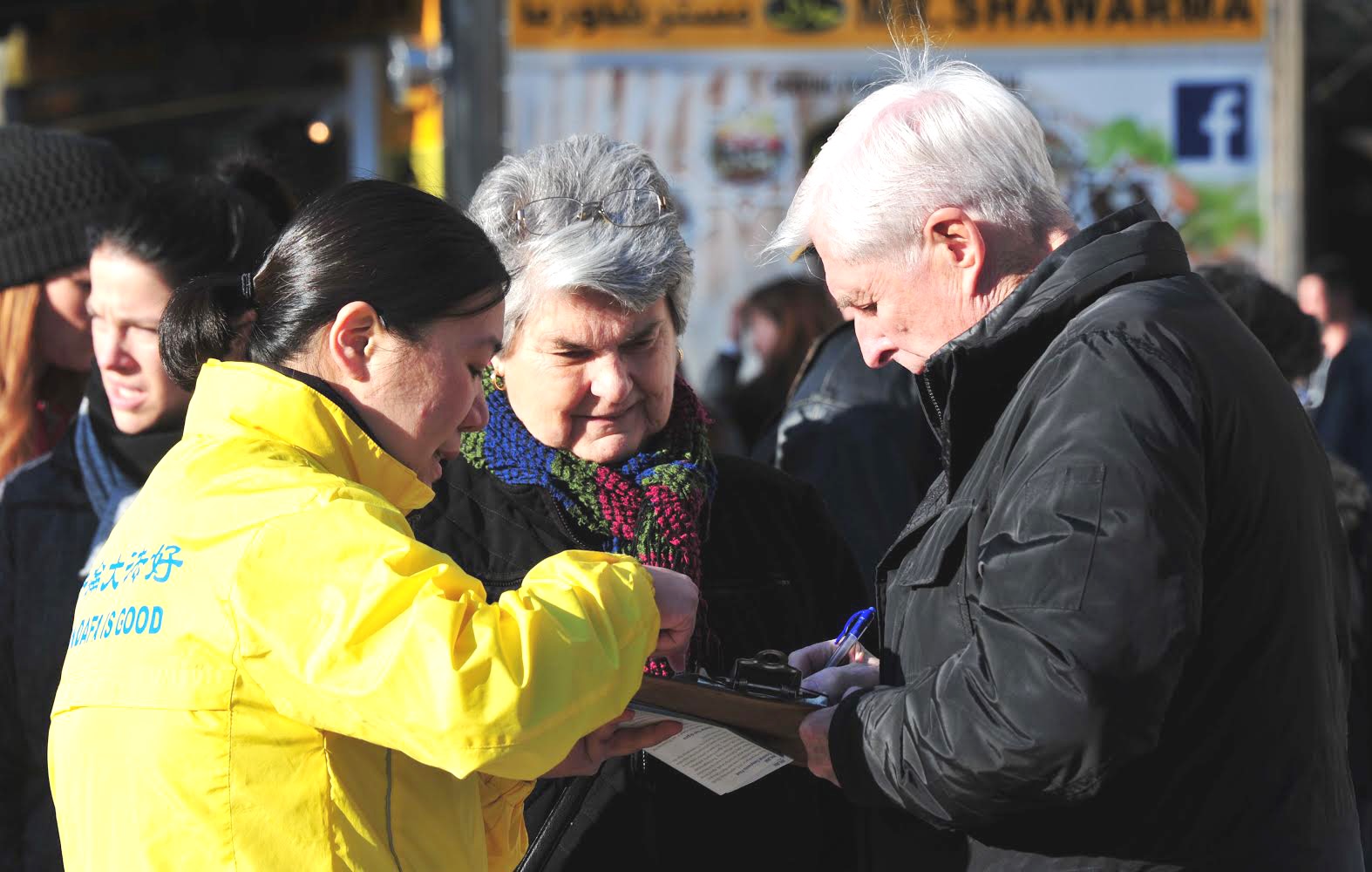 图4~5:很多行人签名支持法轮功学员反迫害。 |