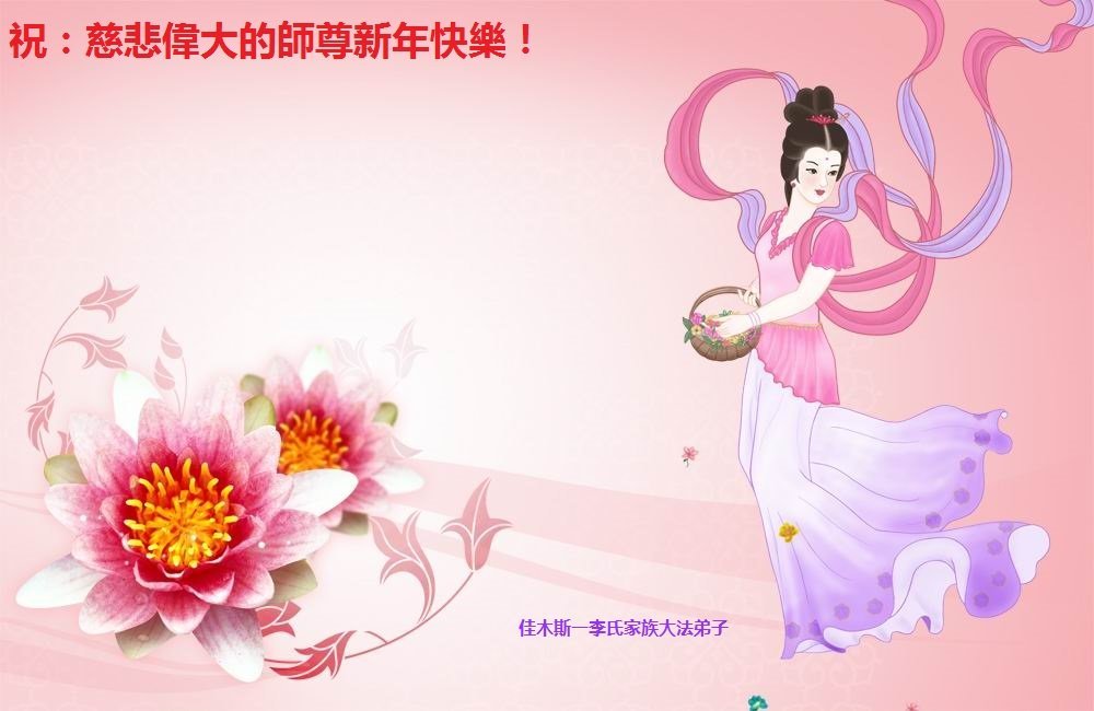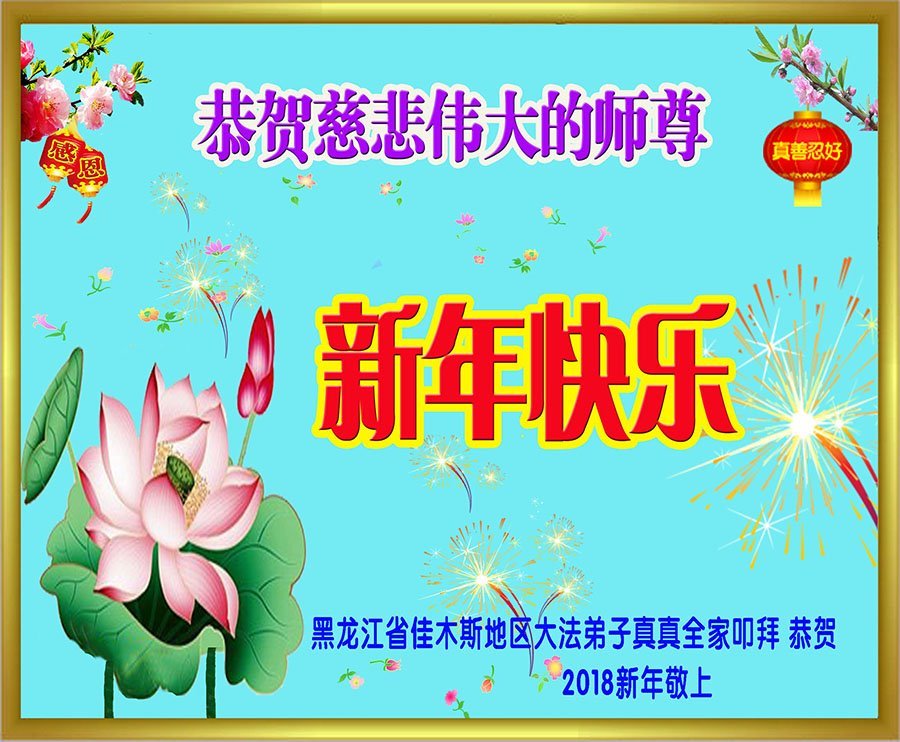正因为有了师尊的承受给予时间的延续,弟子们与众生才有机会还在世上,被谎言蒙蔽的众生才有被救度的机会,弟子们无以言表对师尊的感恩!恭祝伟大的师尊新年快乐! 弟子们一定努力多救人,师尊辛苦了感谢师尊的慈悲苦度! 黑龙江省佳木斯地区大法弟子全家恭祝慈悲伟大的师尊新年快乐!