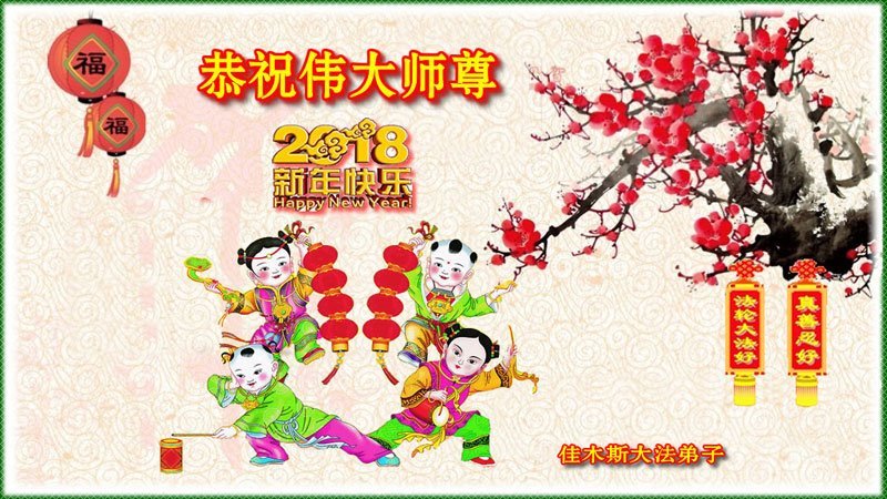 师降吉祥 佛恩浩荡 法轮大法 至高无上 字字句句 闪着金光 赐给人类 美好希望 弟子学法 铸就坚强 伟大师尊 造就金刚 助师正法 邪恶灭亡 新宇如画 美好辉煌 黑龙江省佳木斯大法弟子恭祝伟大的师尊新年快乐!