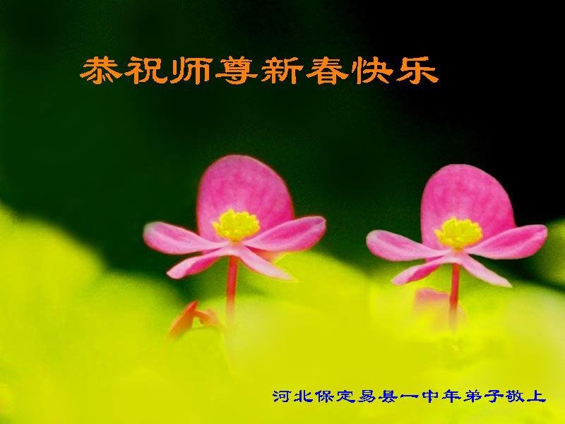 河北保定学法小组大法弟子跪拜师尊新年快乐! 河北保定易县一中年大法弟子恭祝师尊新春快乐!
