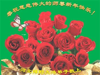 我是九六年开始修炼的,一直认为是师尊在再造乾坤。在这里,只能是用自己的全部心意,表达对师尊的无限敬意,和无法用语言表达的心情。只愿自己能少让师尊为我操心。 恭祝师尊新年! 河北保定两个村的全体大法弟子恭祝师父新年快乐!