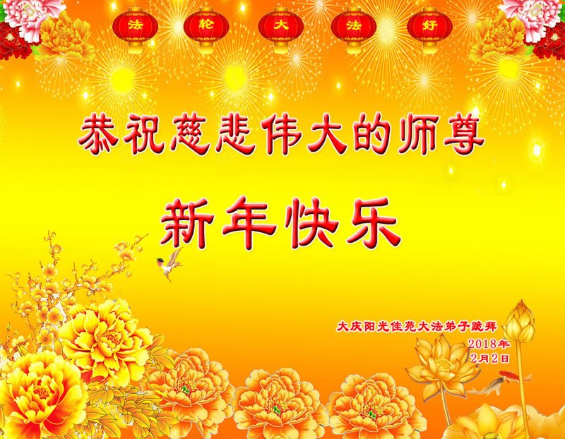 【明慧网二零一八年二月十四日】 黑龙江省大庆阳光佳苑大法弟子恭祝慈悲伟大的师尊新年快乐!