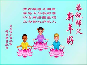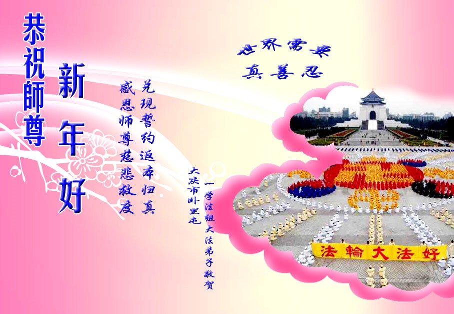 祝师尊新年快乐! 黑龙江大庆市肇州县一学法小组全体大法弟子给师尊拜年!