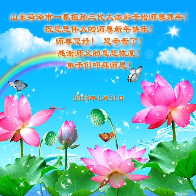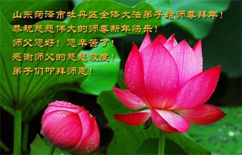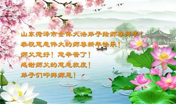 山东菏泽市牡丹区全体大法弟子给师尊拜年!恭祝慈悲伟大的师尊新年快乐! 山东淄博全体大法弟子恭祝师尊过年好!恭祝师尊新年快乐!