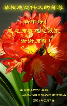 山东泰安姊妹俩大法弟子恭祝师尊新年好! 山东烟台市开发区一学法小组大法弟子恭祝师尊新年好!