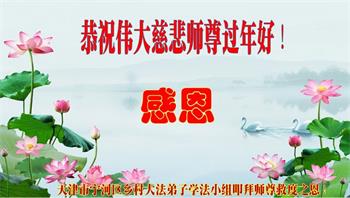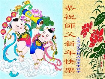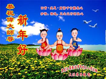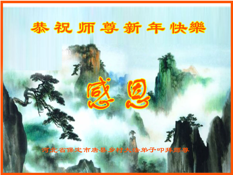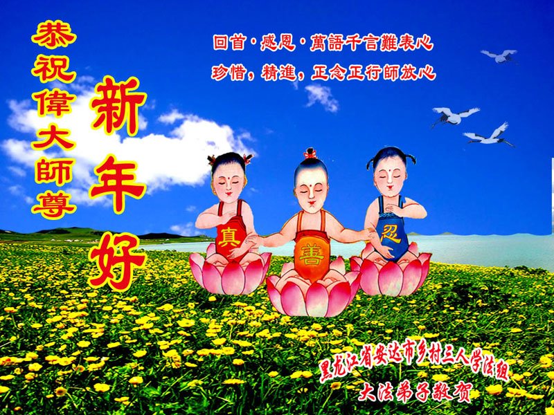 叩拜师尊!师尊辛苦了!二十年来,经过了生死关的魔难,在伟大师尊慈悲的保护下走过来了。今天老伴也走進了大法,由老伴代笔,衷心的谢谢师尊!师尊太辛苦了!弟子一定要精進、再精進。 黑龙江省绥化市肇东市全体乡村大法弟子恭祝师尊新年好!