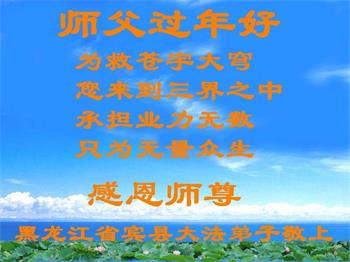 黑龙江省哈尔滨市宾县大法弟子恭祝师父过年好!