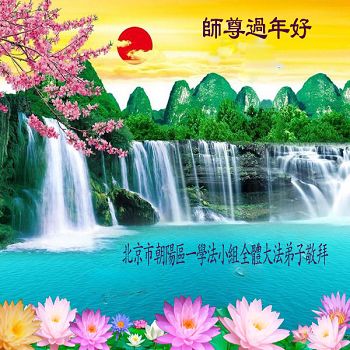 师尊好!感谢师尊的悉心保护与慈悲苦度!在这最后的历史时期,我们会互相帮助做好大法弟子应该做好的三件事,共同精進,共同提高。学法小组全体大法弟子敬拜! 北京朝阳区大法弟子恭祝慈悲伟大的师尊新年快乐!
