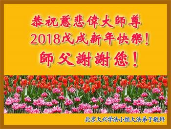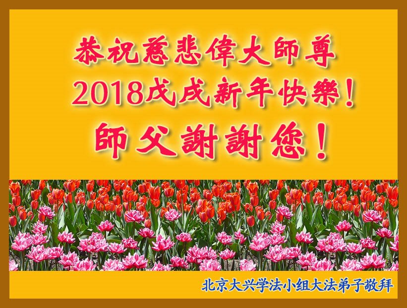 【明慧网二零一八年二月十四日】 北京大兴区学法小组大法弟子向慈悲伟大的师尊致以最崇高的敬意!并向师尊拜年!恭祝师父2018戊戌年新年快乐!