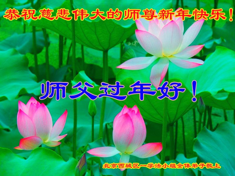 师父您辛苦了!师父谢谢您!我们无限感恩慈悲伟大师尊的慈悲救度,要更加珍惜这万古不遇的机缘,修好自己,多救人,完成好大法弟子的历史使命。叩首敬拜,合十。 北京东城区一学法小组全体大法弟子恭祝师尊过年好!