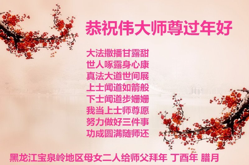 黑龙江宝泉岭地区母女二人大法弟子恭祝师尊过年好!