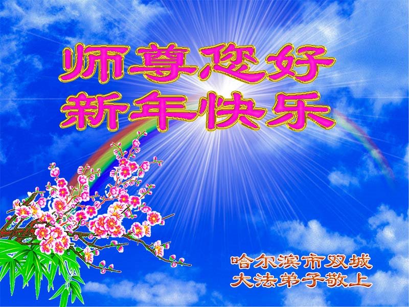 黑龙江省哈尔滨市双城市大法弟子恭祝师尊新年快乐!