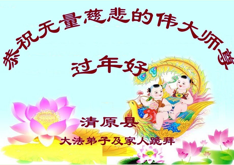 在新的一年里,我们夫妻和同修协调好做好助师正法的项目,修好自己和同修们共同精進。请师尊放心! 2018年2月3日 辽宁省抚顺市清原县3位大法弟子恭祝师尊新年快乐!