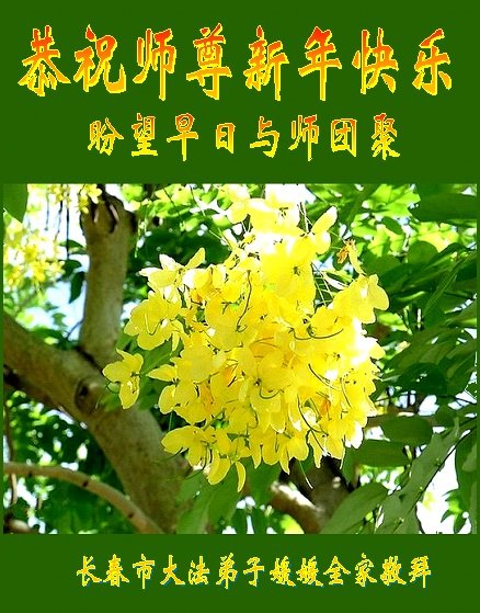 吉林省长春一大法弟子全家恭祝慈悲伟大的师尊新年快乐!