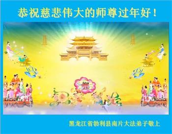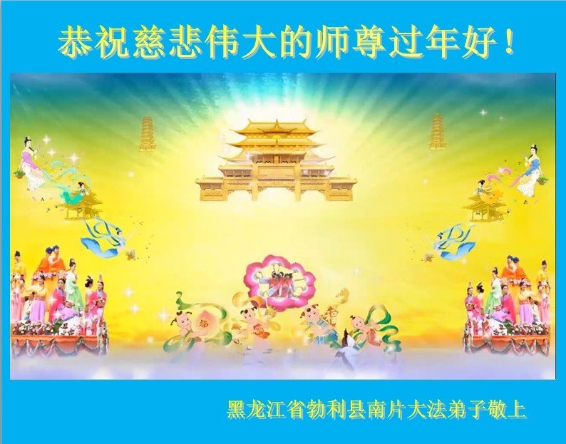 黑龙江省七台河市勃利县全体大法弟子问候师尊: 恭祝慈悲伟大的师尊过年好! 黑龙江省七台河市勃利县全体大法弟子敬上 黑龙江省七台河市勃利县勃利镇大法弟子问候师尊!