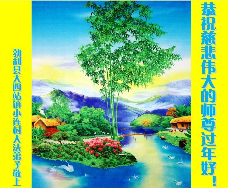 黑龙江省勃利县大四站镇小连村大法弟子问候师尊: 恭祝慈悲伟大的师尊过年好! 黑龙江省勃利县大四站镇小连村大法弟子敬上 黑龙江周氏三姐妹大法弟子恭祝师父新年快乐!