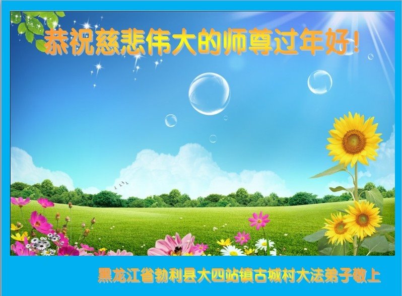黑龙江省勃利县吉兴乡大法弟子问候师尊: 恭祝慈悲伟大的师尊过年好! 黑龙江省勃利县吉兴乡大法弟子敬上 黑龙江省牡丹江市大法弟子恭祝师尊新年快乐!