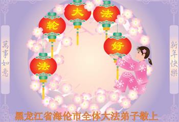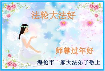 黑龙江省绥化市海伦市一家大法弟子恭祝师尊过年好!