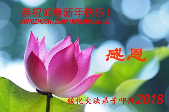 在新年到来之际,弟子感恩慈悲伟大的师尊救度,千言万语也表达不了弟子的感恩之情!弟子无以为报,在这里叩首谢恩。唯有学好法,做好三件事,更加精進实修,不断向内找,修好自己,助师正法,多救人,兑现史前的誓约,跟师父回家。 二零一八年一月 黑龙江大法弟子恭祝师父过年好!
