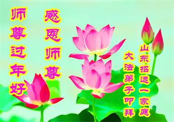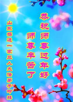 叩谢师恩 山东烟台招远一家大法弟子恭祝慈悲伟大的师尊过年好!