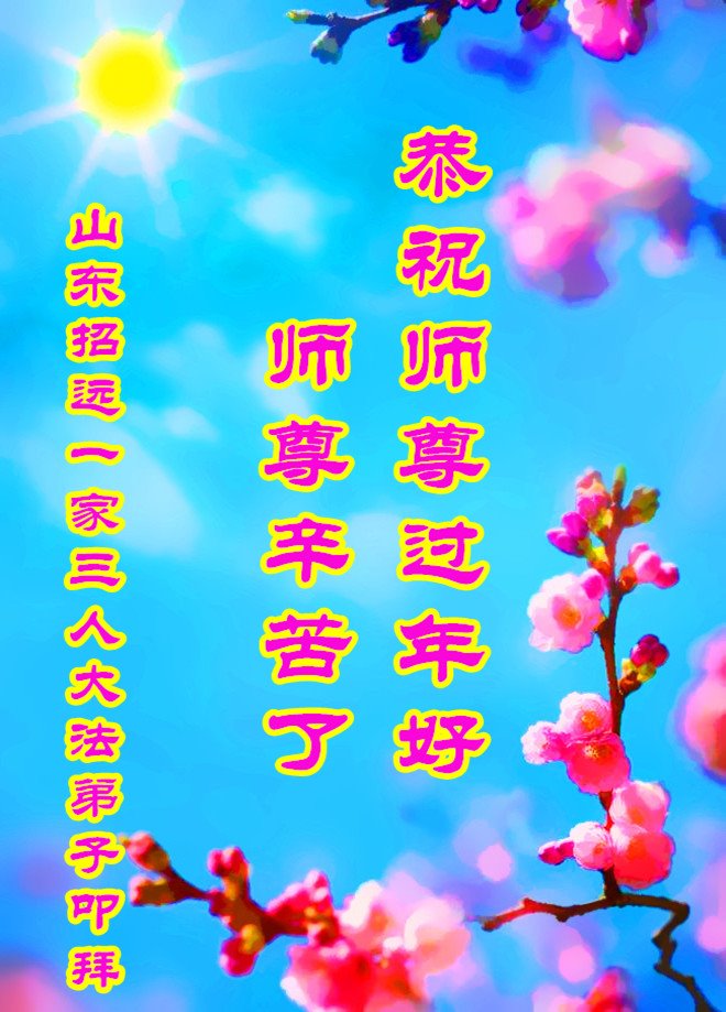 恭祝慈悲伟大的师尊新年快乐! 山东济宁老年大法弟子叩拜 山东烟台招远两位大法弟子恭祝师尊新年快乐!