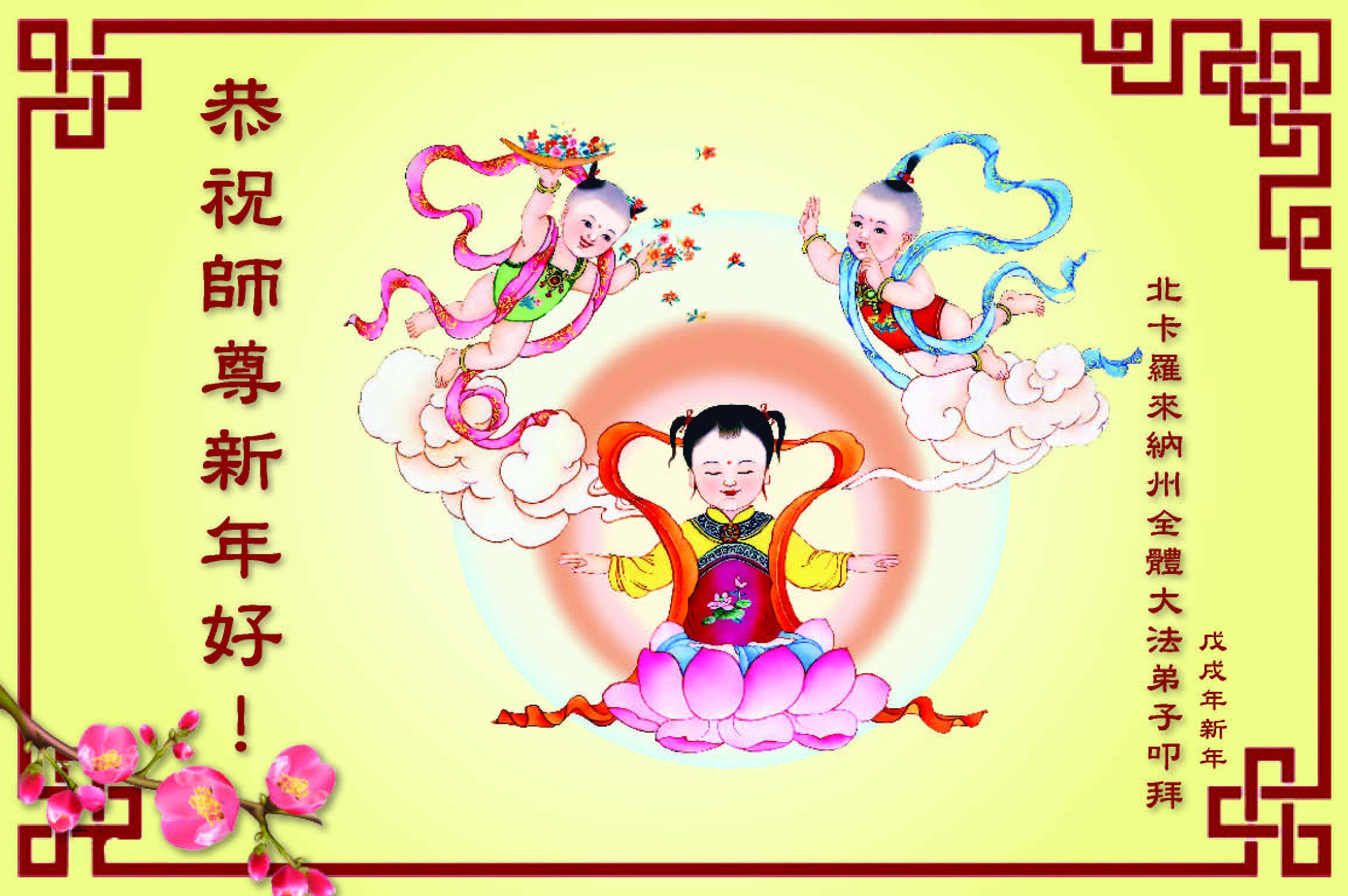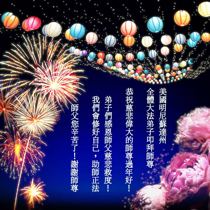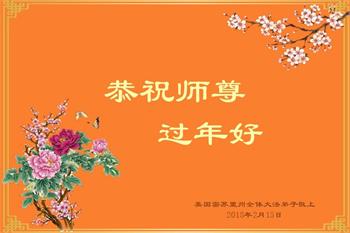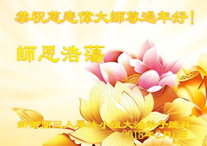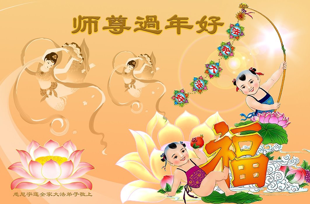 恭祝慈悲伟大的师尊 新春快乐! 悉尼大法弟子全家 叩拜师尊 美国上州中城一家大法弟子恭祝师尊新年快乐!