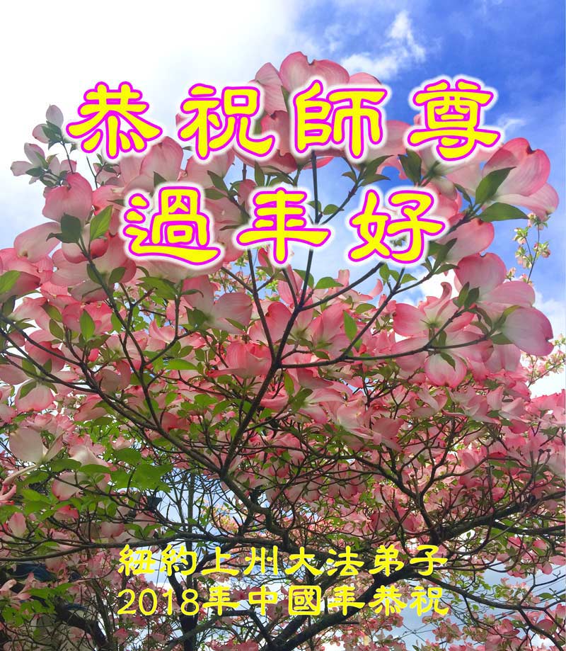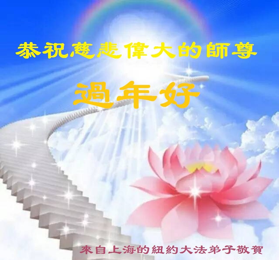 我是1996年春得法的弟子,叩拜师尊过年好! 叩首谢师尊的慈悲救度之洪恩!弟子一定精進实修自己,做好三件事,跟上正法進程,跟师父回家。 来自上海的纽约大法弟子恭祝慈悲伟大的师尊過年好!