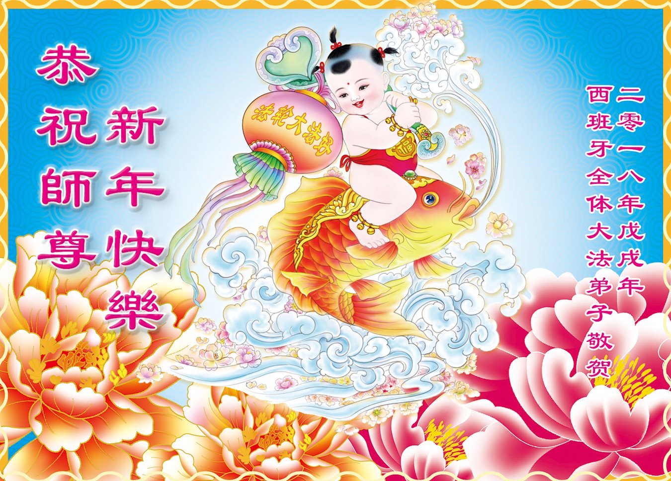 西班牙全体大法弟子恭祝慈悲伟大的师尊过年好!